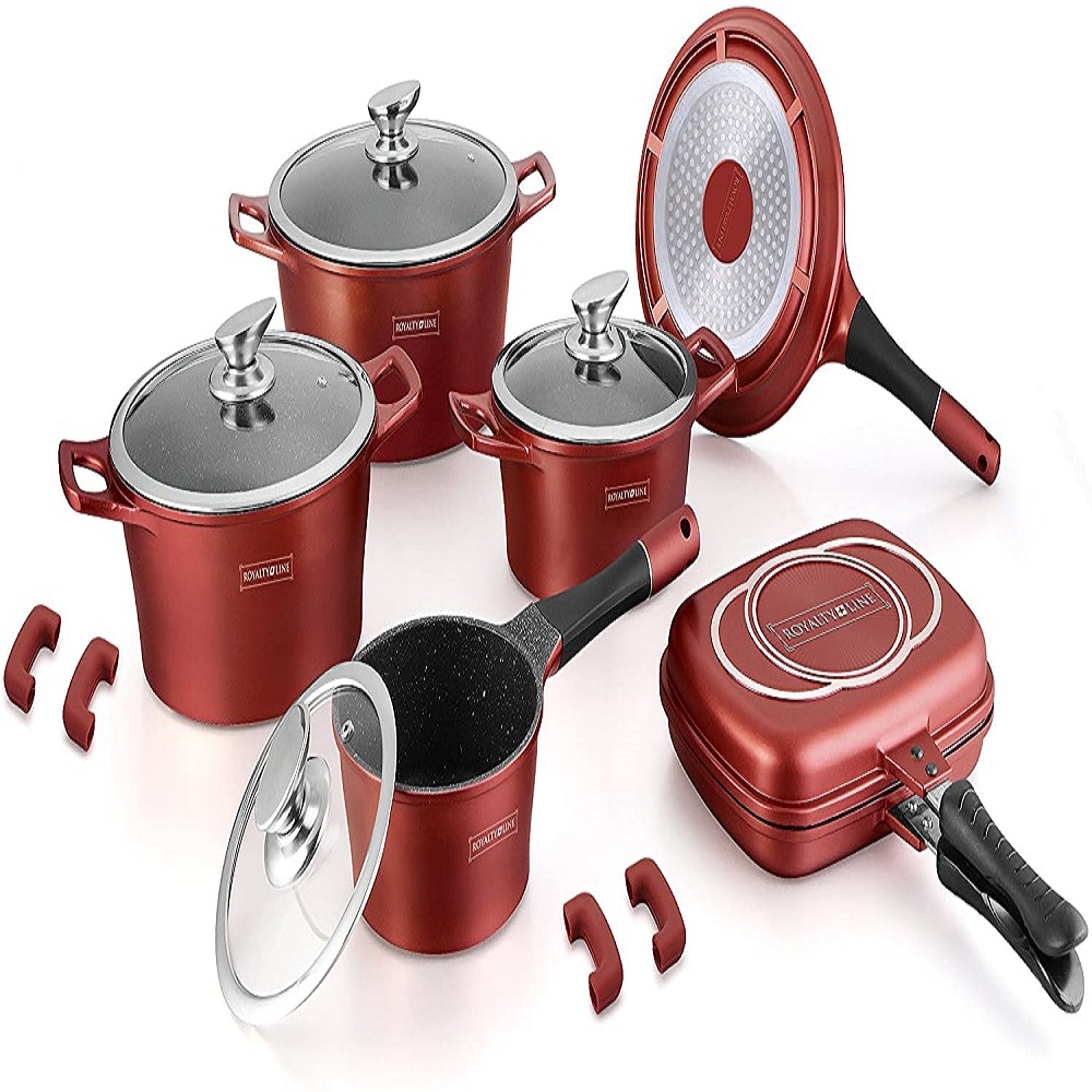 Royalty Line 15-Pieces Marble Coating Cookware Set – Burgundy